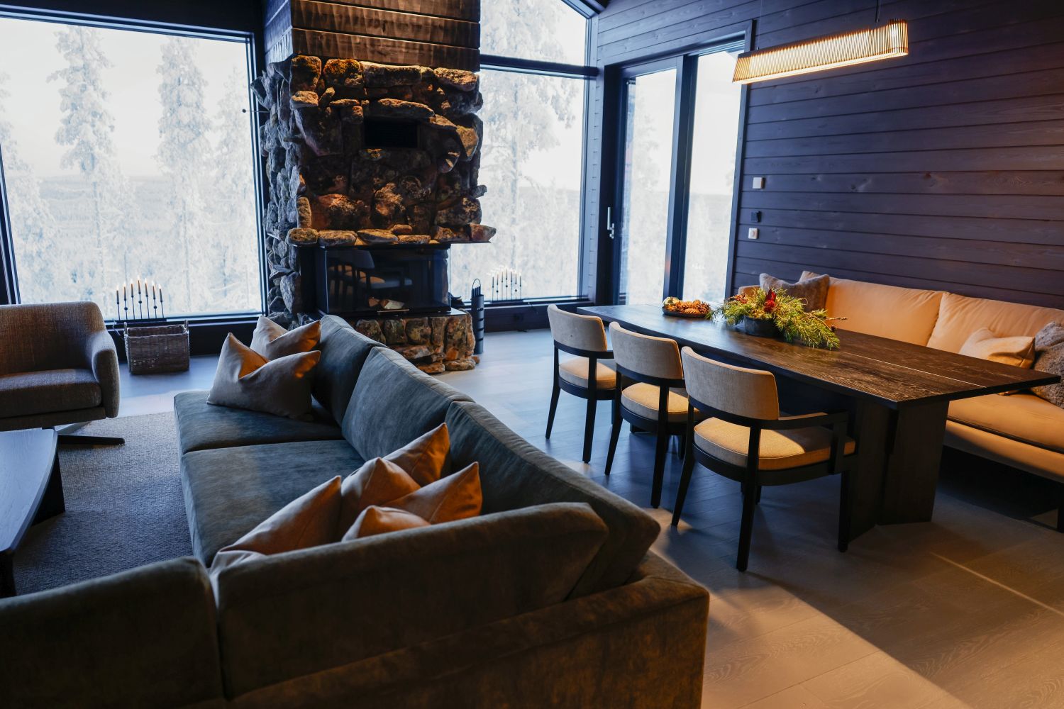 Die Octola Villa beherbergt zwei Schlafzimmer mit Sitzgelegenheiten, einen separaten Wohn- und Essbereich mit Kamin, eine Küche, mehrere Badezimmer, einen privaten Spa-Bereich mit finnischer Sauna und Außenterrasse mit Jacuzzi sowie zwei weitere große Terrassen, welche sich hervorragend zum Bestaunen der Nordlichter im Winter anbieten.
