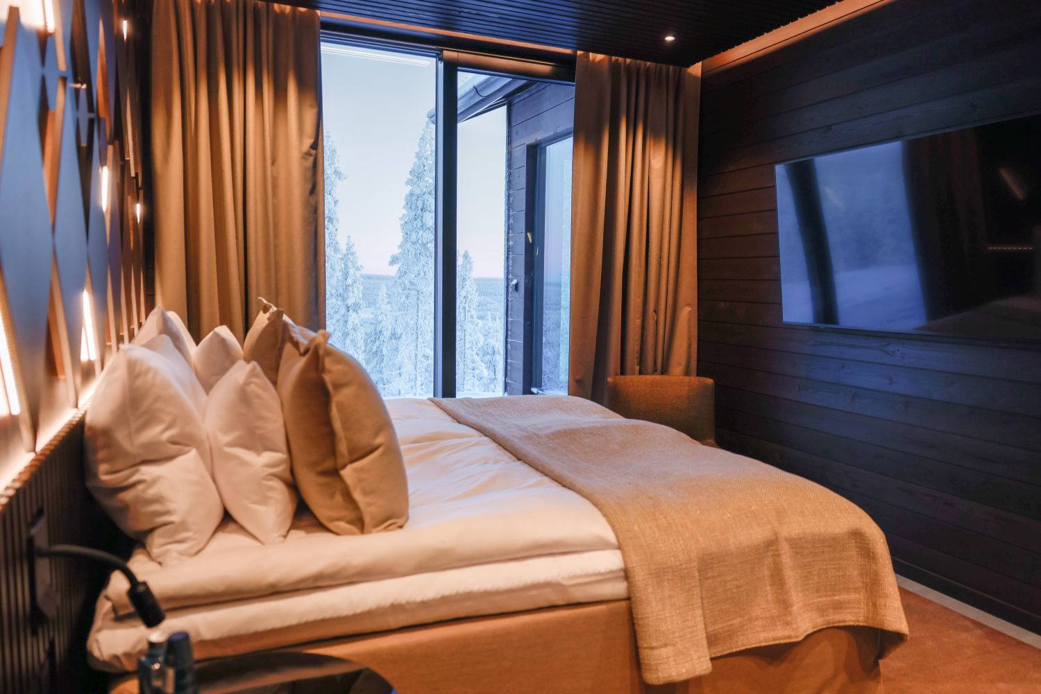 Glass Igloo Suite ein Schlafzimmer mit Sitzgelegenheit