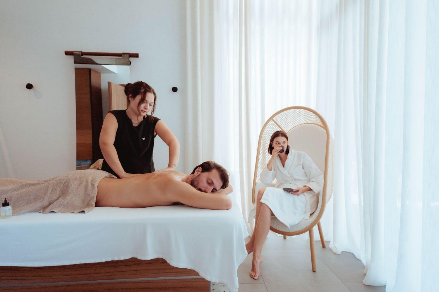 Der Away Spa bietet Ihnen exklusive Wellness- und Schönheitsbehandlungen. Viele der Behandlungen werden mit heimischen Elementen wie reinigenden Olivenblättern, Zitrusfrüchten, Kräutern, Blumen und Meersalzen durchgeführt. Zusätzlich verfügt der Spa über Saunen und Dampfbäder. Wenn Sie im W Costa Navarino wohnen, haben Sie auch Zugang zum Anazoe Spa des benachbarten The Romanos, a Luxury Resort. Die Fläche des Anazoe Spa beträgt 4000 Quadratmeter.