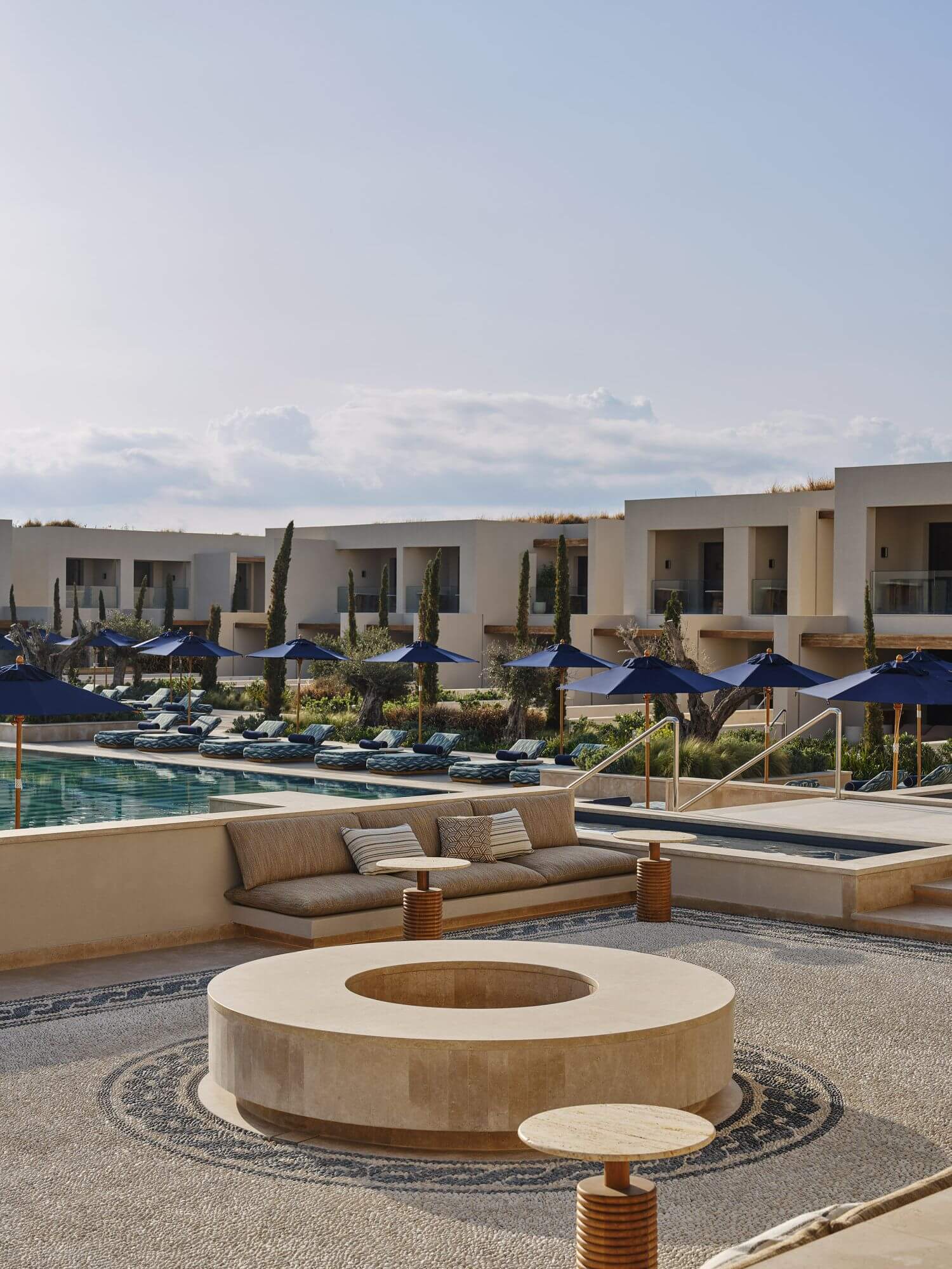 Die Hemera Hideaway Private Pool Inland View Zimmer verfügen über ein Schlafzimmer mit Sitzgelegenheit. Des Weiteren genießen sie eine Terrasse mit Blick aufs Meer und einen privaten Pool.