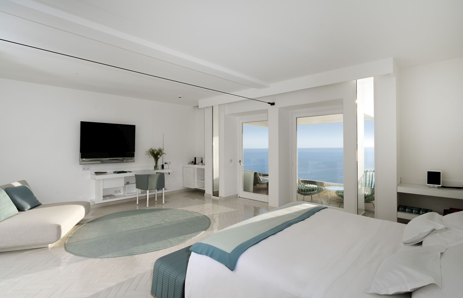 Mit herrlichem Meerblick auf Positano und Capri ist die exquisite Vermarine Suite eine Oase purer Eleganz und Raffinesse, inspiriert vom Vermarine-Stein. Jeder sorgfältig ausgewählte Farbton harmoniert mit natürlichen Elementen und schafft einen beruhigenden Rückzugsort, der stillen Luxus nahtlos mit der Schönheit der Natur verbindet.