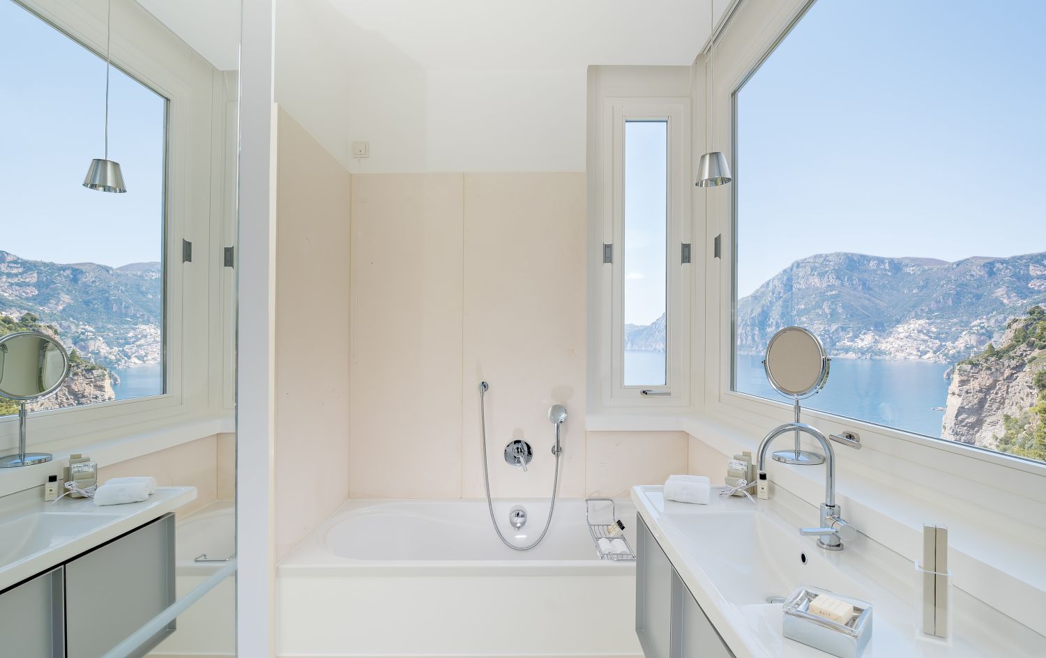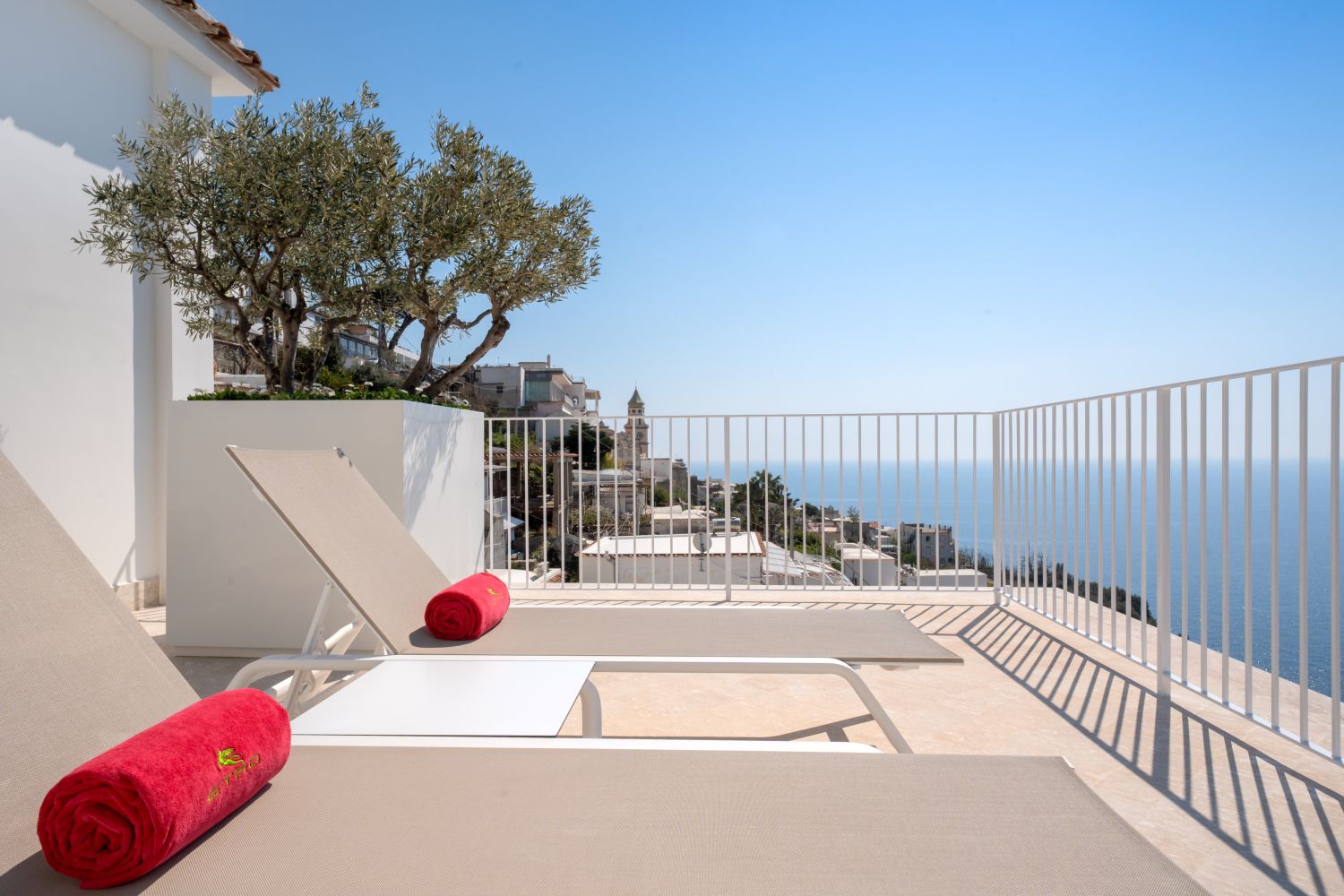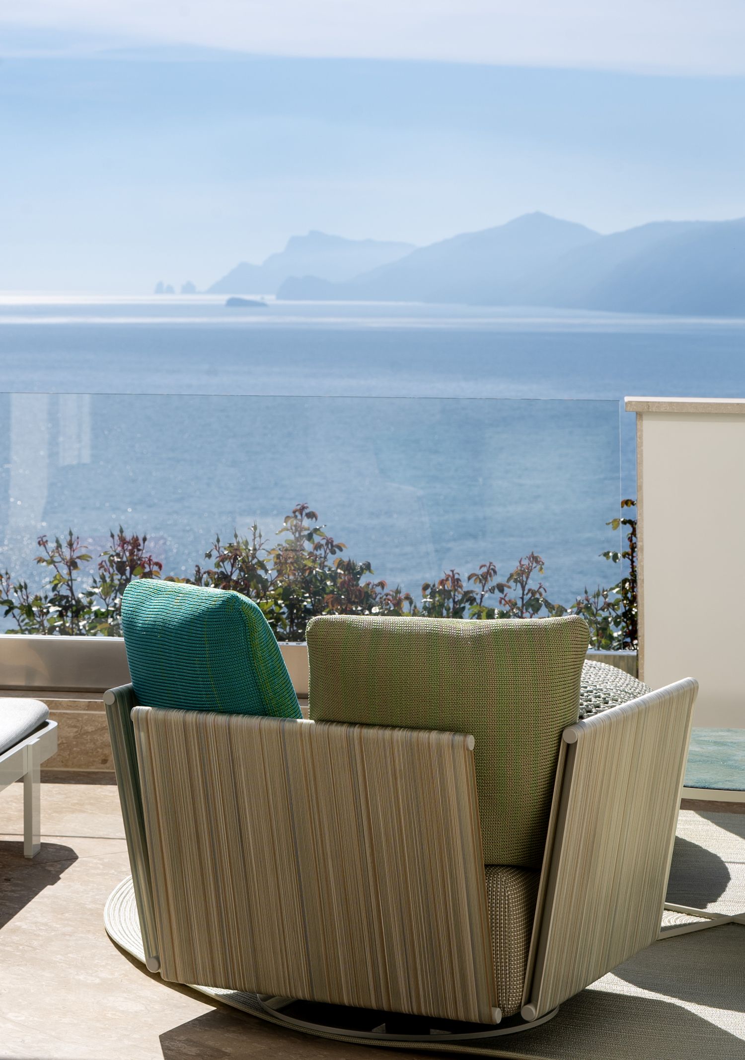Der Relaxing Room bietet 26 Quadratmeter Innenfläche und 10 Quadratmeter Außenfläche – ideal, um zur Ruhe zu kommen und den Sonnenuntergang zu genießen. Die Gäste erwartet ein wahrer Augenschmaus mit Blick auf den Golf von Salerno und die nahegelegenen, bewaldeten Gipfel.