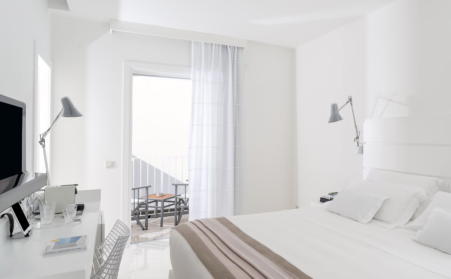 Das Romantikzimmer bietet 23 Quadratmeter weiß getünchten, abgeschiedenen Luxus und ist ideal für Hochzeitsreisende oder Gäste, die einen besonderen Anlass feiern. Genießen Sie vom 4 Quadratmeter großen Balkon aus einen spektakulären Blick auf das Meer.