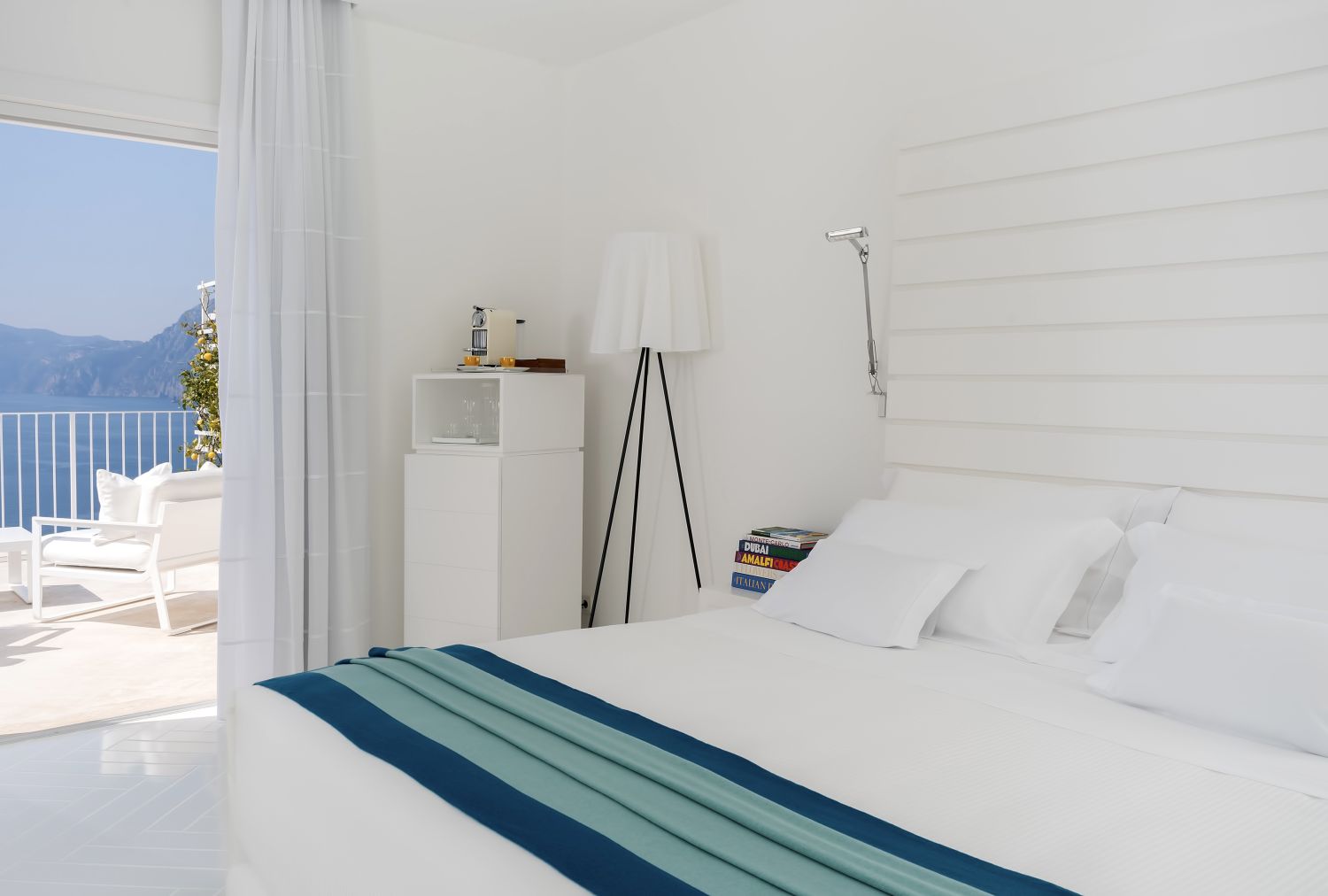 Diese zurückhaltend-schicke, 30 Quadratmeter große Suite verkörpert die stilistische Handschrift der Casa Angelina. Hell, luftig und von müheloser Eleganz, ausgestattet mit Möbeln und Details von Design-Größen wie Philippe Starck und Gandia Blasco, ist dieser Raum zugleich zeitlos und absolut zeitgemäß. Mit einer privaten, 30 Quadratmeter großen Terrasse, von der aus man den spektakulären Blick auf Amalfi genießen kann, ist die Grand De Luxe der ideale Ort, um neue Energie zu tanken und wieder zu sich selbst zu finden.