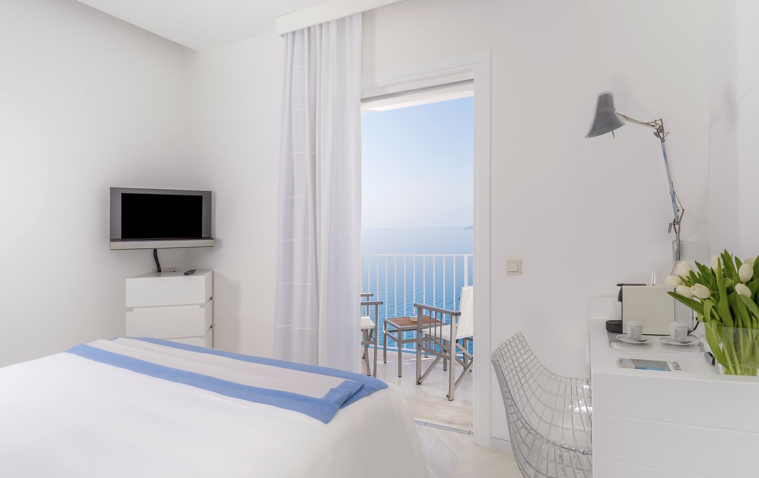 Das Highlight des modernen Designhotels ist mit Sicherheit seine Lage: Direkt in den Felsen gebaut bietet es von jedem Punkt im Hotel einen atemberaubenden Blick aufs Meer und die Küste. Die Zimmer und Suiten sind modern eingerichtet und der Pool des Resorts ist umringt von Zitronenbäumen – Der Duft ist ein Traum. Mein Tipp: Die tolle Dachterrasse mit dem Restaurant ist ein Traum für jedes Frühstück am Morgen.