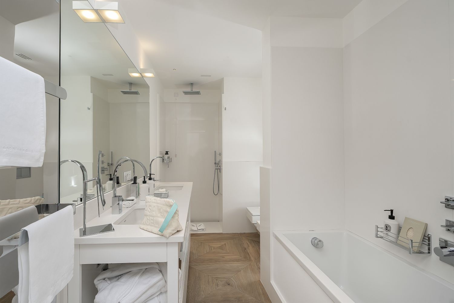 Die Angelina Suite befindet sich in der obersten Etage und bietet einen unvergleichlichen Panoramablick. Sie ist das ultimative Sinnbild für den geschätzten Luxus, den Service und den Stil. Die namensgebende Suite bietet 60 Quadratmeter Ruhe – eine ganz in Weiß gehaltene Oase, die einen atemberaubenden Kontrast zum Farbenkaleidoskop der umgebenden Landschaft bildet. Gäste können sich auf ihrer privaten, 30 Quadratmeter großen Terrasse sonnen oder im Freien speisen und sich im großzügigen, von Philippe Starck entworfenen Badezimmer mit separater Dusche und Badewanne entspannen.