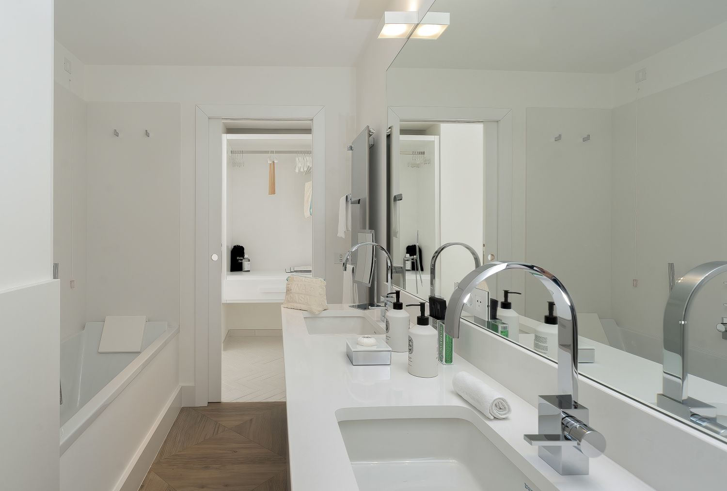 Die Suite befindet sich im 3. Stock und verfügt über einen komfortablen, 42 m² großen offenen Innenbereich mit Schlaf- und Wohnbereich, begehbarem Kleiderschrank und großem Badezimmer mit separater Badewanne und begehbarer Dusche. Eine sehr große, 33 m² große Terrasse mit Meerblick ist komplett mit Paola-Lenti-Liegestühlen und bequemen Sofas ausgestattet, auf denen Sie entspannte Momente genießen und die bezaubernde Aussicht bewundern können.