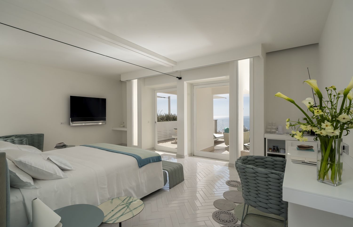 Die lichtdurchfluteten Zimmer des Casa Angelina sind mit allem eingerichtet, was Sie für einen komfortablen Aufenthalt benötigen. Zur Ausstattung zählen L’Occitane und Jo Malone Toilettenartikel, Etro-Bettlaken, kostenloses WLAN und Apple iPads. Klare Linien, schlichte, moderne Möbel und viel Weiß unterstreichen die reichen Farbtöne der Natur, die man von den Fenstern und Terrassen der Zimmer mit Meerblick sehen kann. Das Casa Angelina ist ein Hotel nur für Erwachsene, Kinder ab 12 Jahren sind herzlich willkommen.