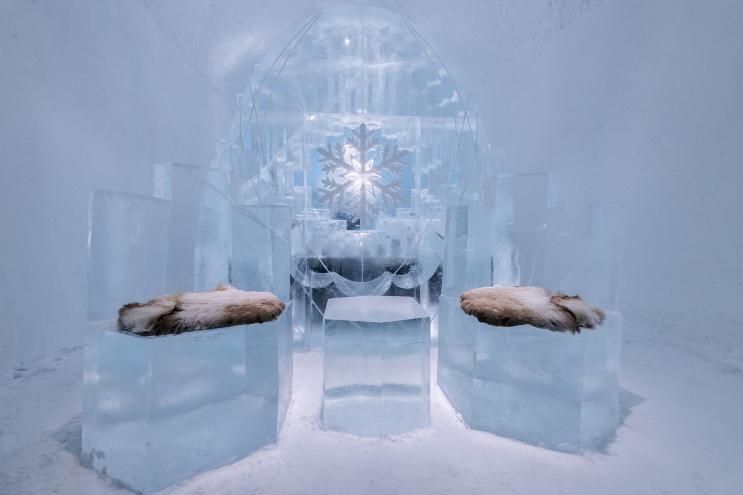 Icehotel Jukkasjärvi Ganzjähriges Eishotel – wechselnde Künstler – Übernachten im Kalten