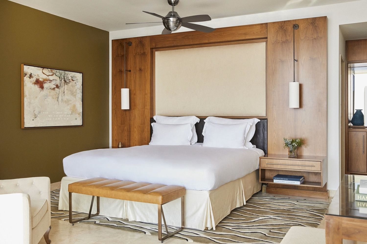 Die 190 m² große Suite mit Meerblick bietet zwei Schlafzimmer, einen großzügigen Wohn- und Essbereich für bis zu sechs Personen sowie eine private Terrasse mit Blick auf Meer und Berge. Sie verfügt über ein Marmorbadezimmer, begehbaren Kleiderschrank, Kitchenette, kleine Bibliothek sowie moderne Technik, Minibar und Nespresso-Maschine.