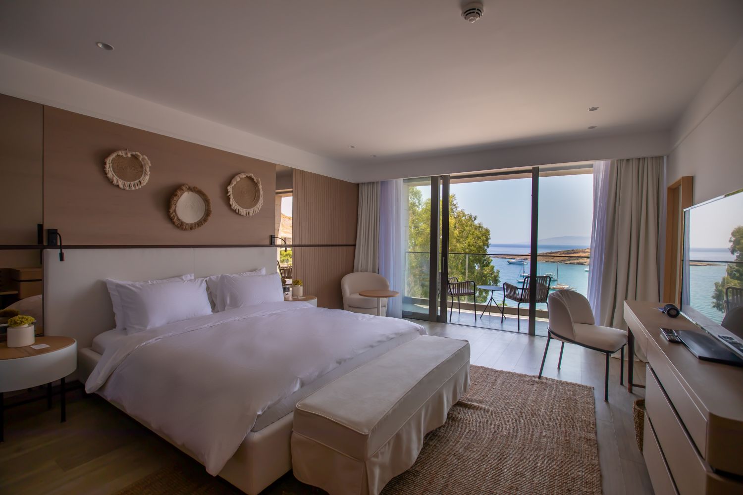 Das METT Bodrum zieht seine Gäste mit seiner klaren Architektur, warmen Naturmaterialien und mediterraner Farbpalette in den Bann. Offene Räume, viel Licht und ein harmonisches Zusammenspiel aus Holz, Stein und Weiß schaffen eine Atmosphäre, die modern und zugleich erdend wirkt. Das Resort liegt terrassenförmig über der ruhigen Haremtan-Bucht mit atemberaubendem Blick über das türkisfarbene Meer bis hin zur vorgelagerten Insel Kos. Die Zimmer, Suiten und Pool-Villen verbinden zeitgemäßes Design mit lässigem Luxus: helle Stoffe, handgefertigte Details, großzügige Terrassen und – in vielen Einheiten – private Pools oder Jacuzzis. Alles ist darauf ausgelegt, das mediterrane Lebensgefühl in seiner schönsten Form zu zelebrieren.