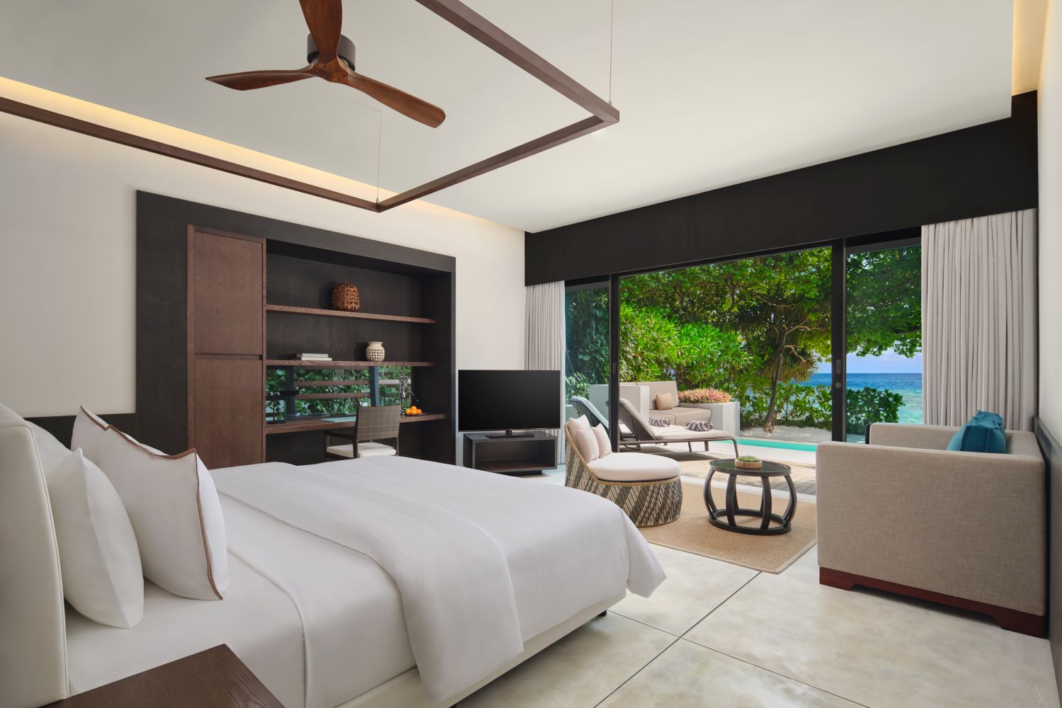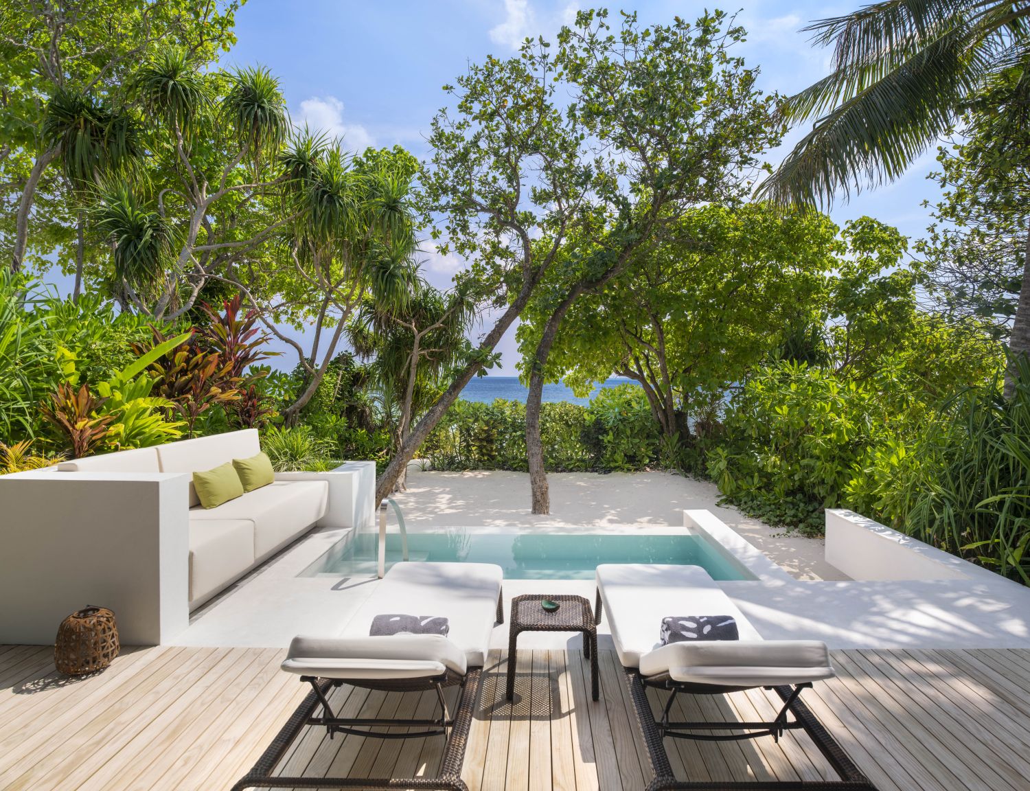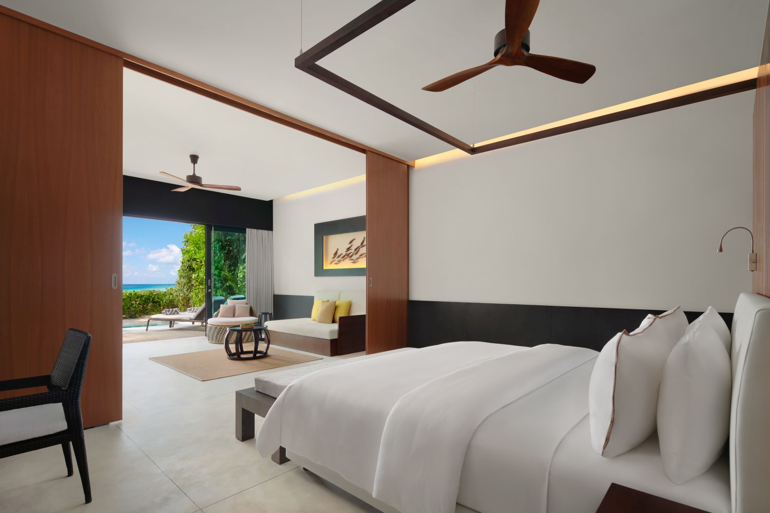 Die Beach Villa Pool besitzt ein elegantes, luxuriöses Design, Meerblick und ist mit einem Kingbett oder zwei Einzelbetten ausgestattet. Das Badezimmer verfügt über eine Outdoordusche und von der Terrasse mit privatem Pool haben Sie Zugang zum Strand.