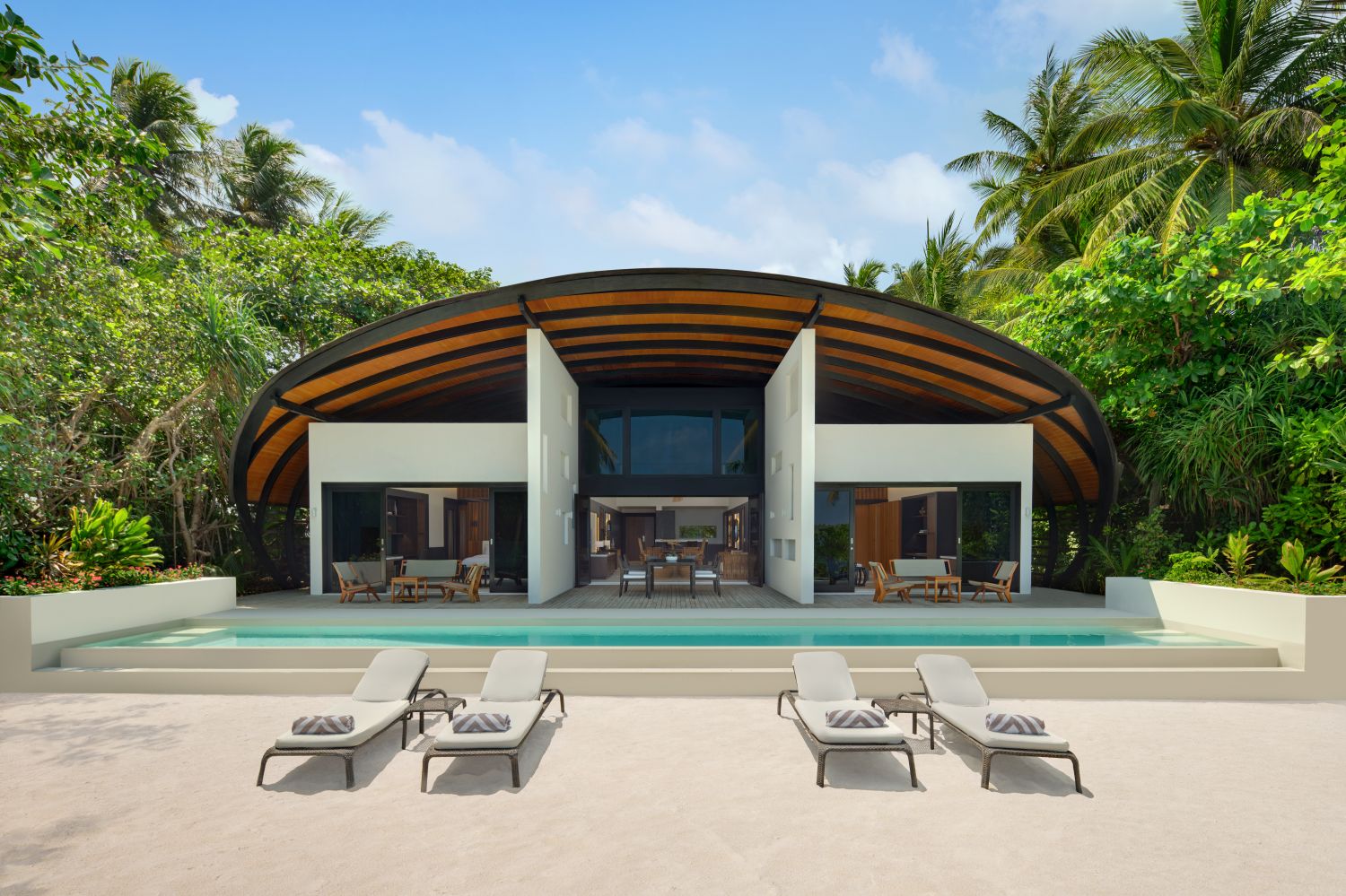 Die Two Bedroom Beach Villa Pool verfügt über zwei luxuriöse Schlafzimmer samt Badezimmer und Außendusche. Auf der großen Terrasse befinden sich Sonnenliegen und ein privater Pool. Von dort genießen Sie einen entspannenden Meerblick und haben Zugang zum Strand.