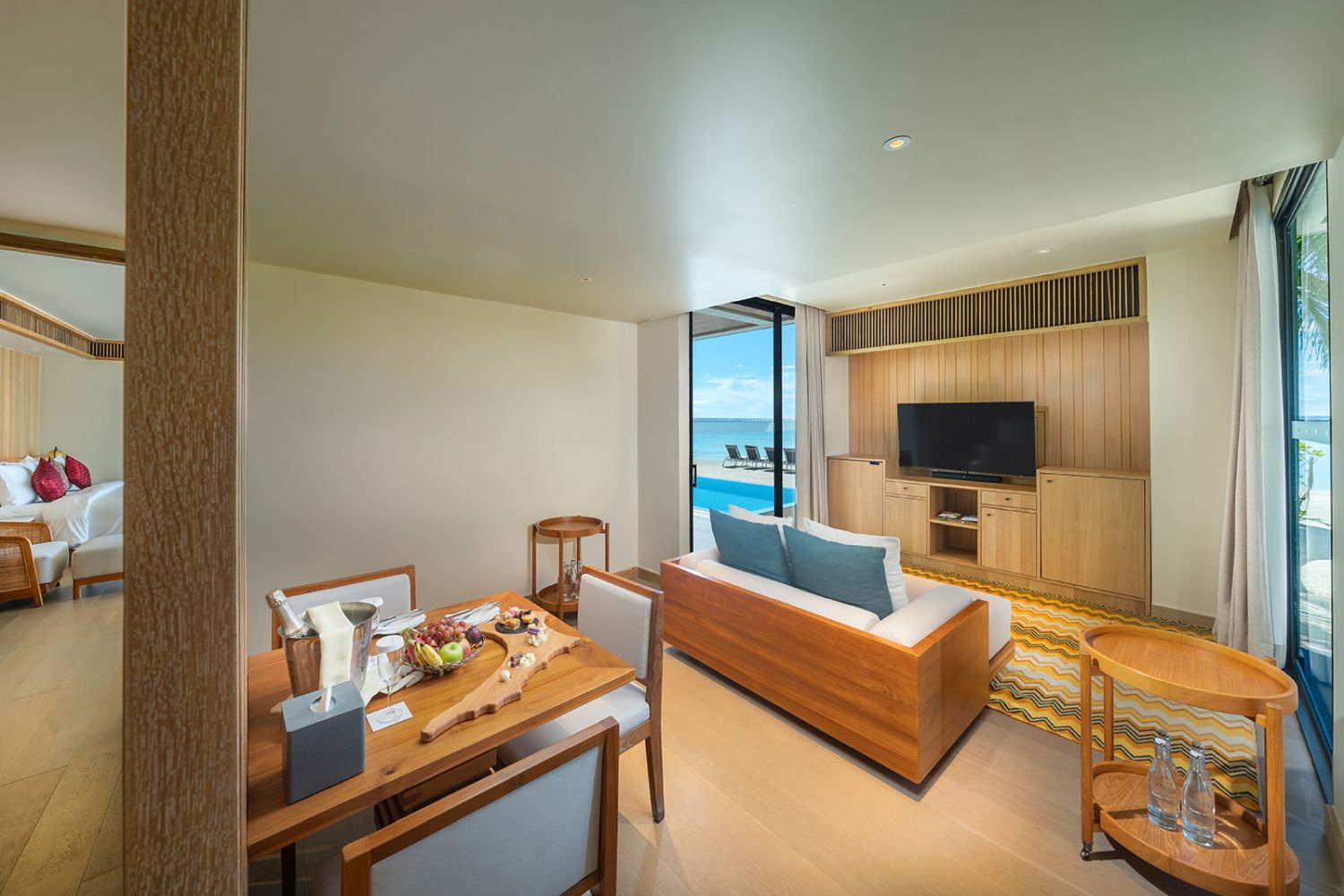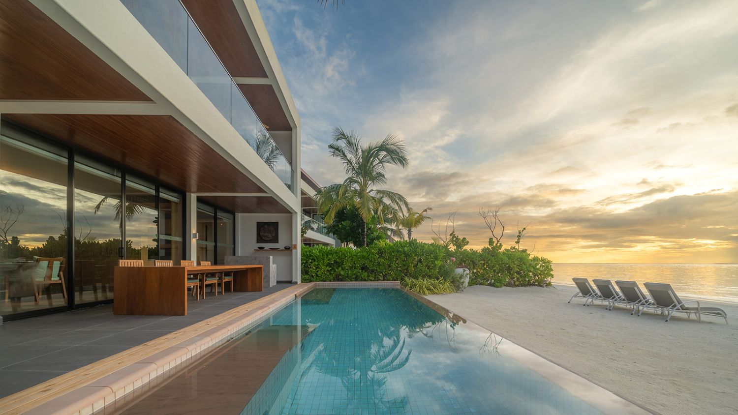 Die Two Bedroom Beach Residence with Private Pool verfügt über zwei Schlafzimmer mit integriertem Wohnzimmer. Im Außenbereich erwartet Sie ein 10-Meter langer Pool.