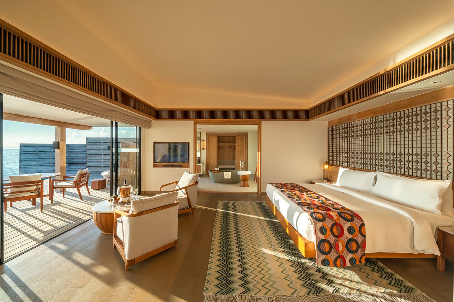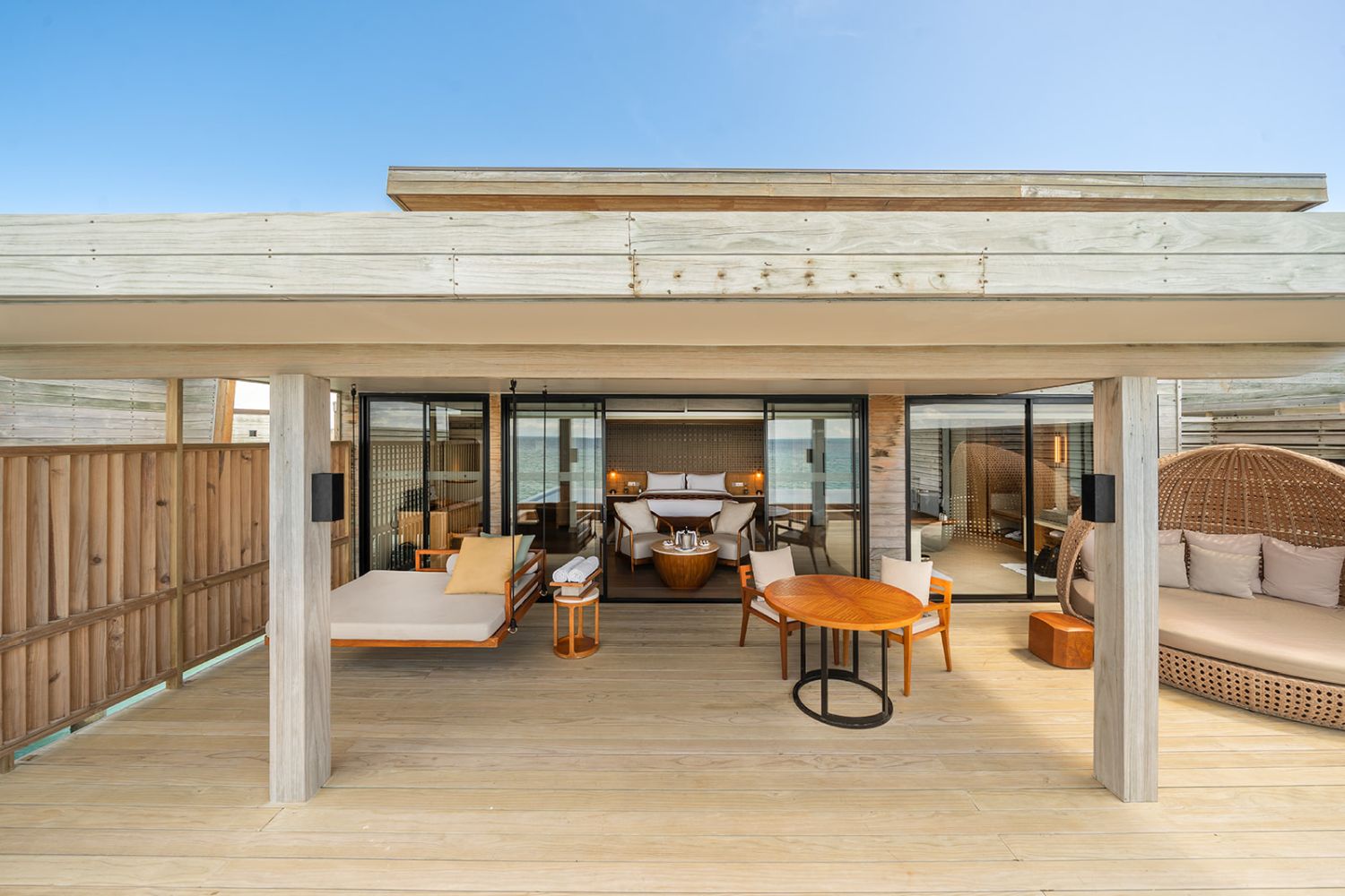 Die Water Villa with Private Pool ist auf Stelzen über der Lagune erbaut. Vom privaten Plunge-Pool aus blicken Sie auf das ruhige Meer und den Sonnenaufgang.