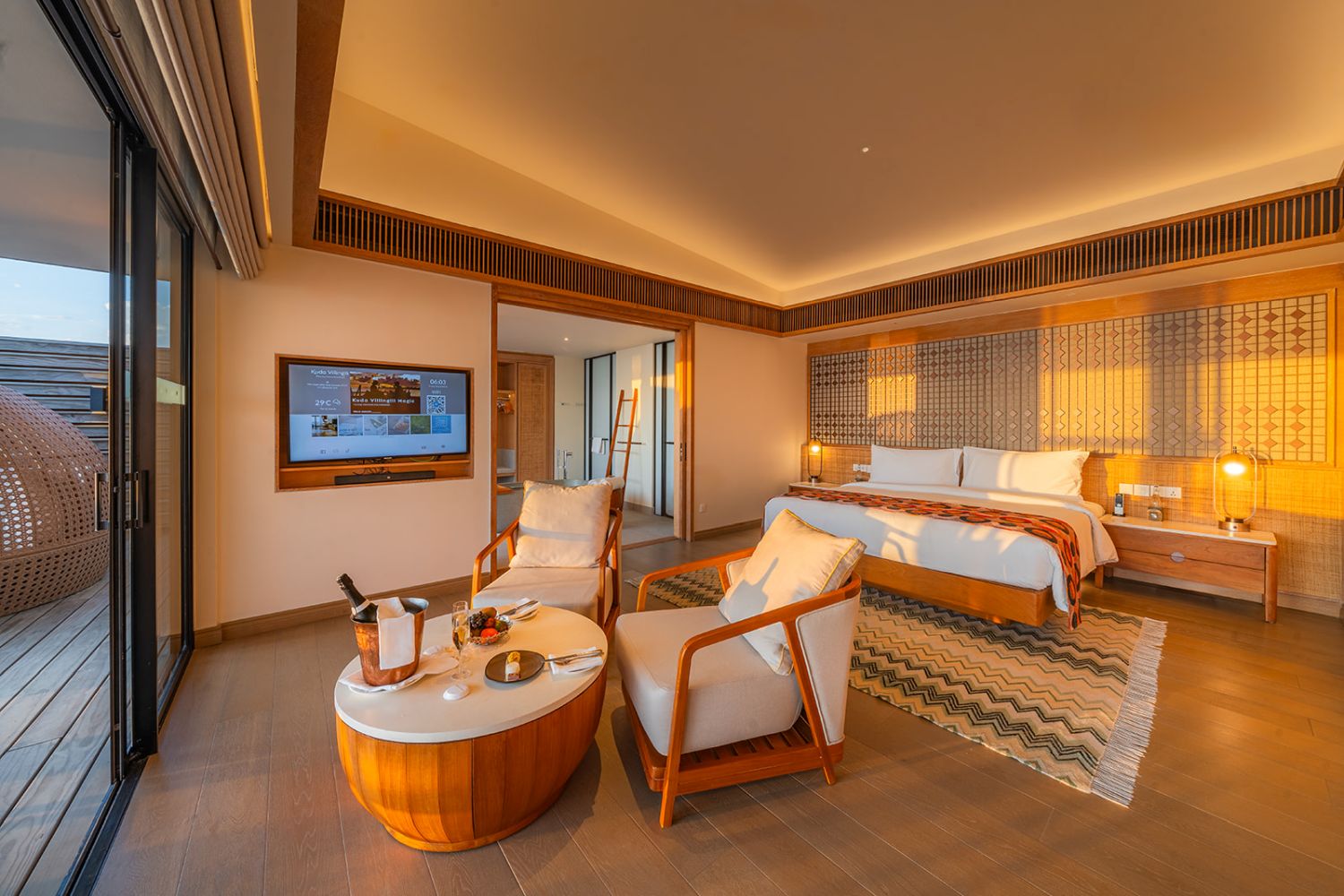Sunrise Water Villa with Private Pool kombiniertes Wohn- und Schlafzimmer