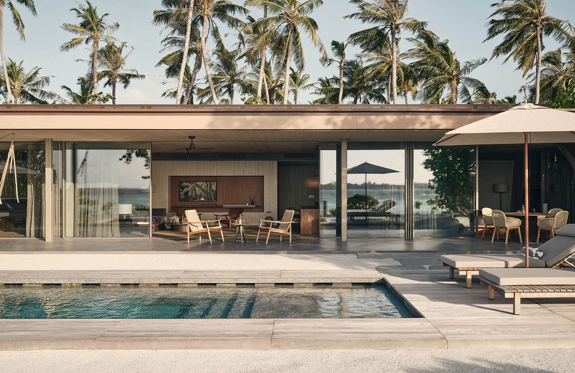 Die Villen sind am Strand gelegen und verfügen über ein kombiniertes Wohn- und Schlafzimmer, einen privaten Garten oder eine Sonnenterrasse sowie über einen privaten Pool.
