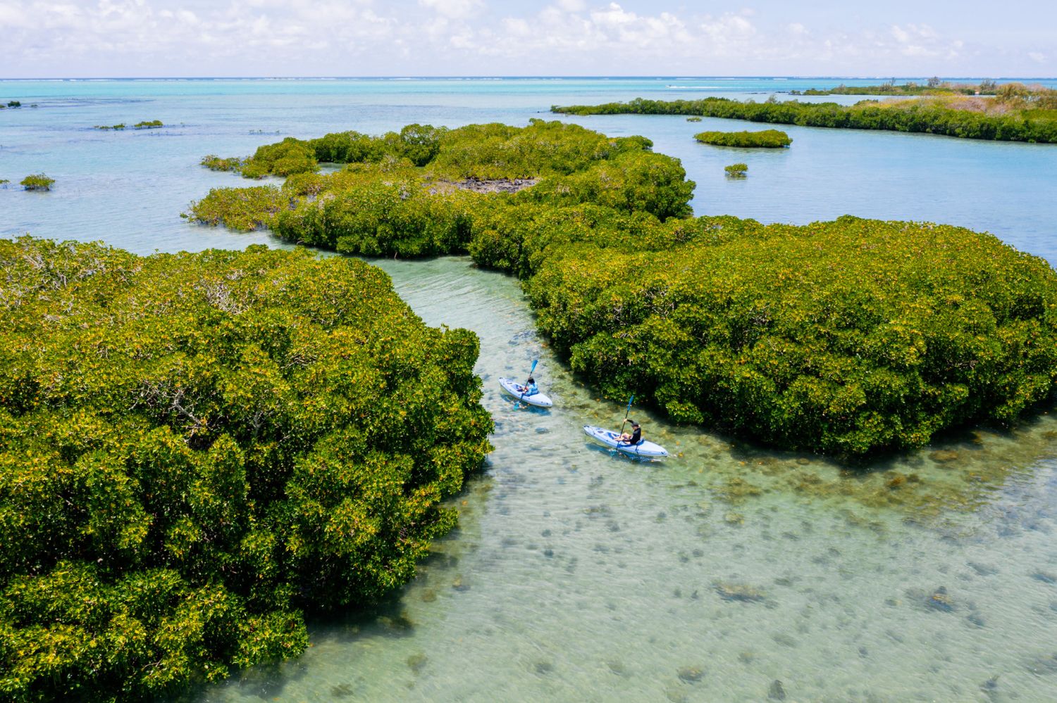 Das Five Bedroom Residence with Pool beeindruckt mit fünf Schlafzimmern, einem separaten Wohn- und Essbereich sowie einer Küche und einem großen Außenbereich mit Pool. Hier entspannen Sie auf den Sonnenliegen und genießen dabei den Ausblick auf die Lagune und die Mangrovenbäume.