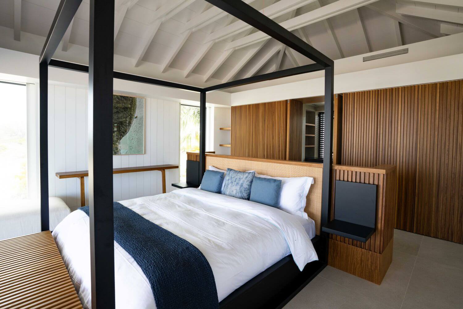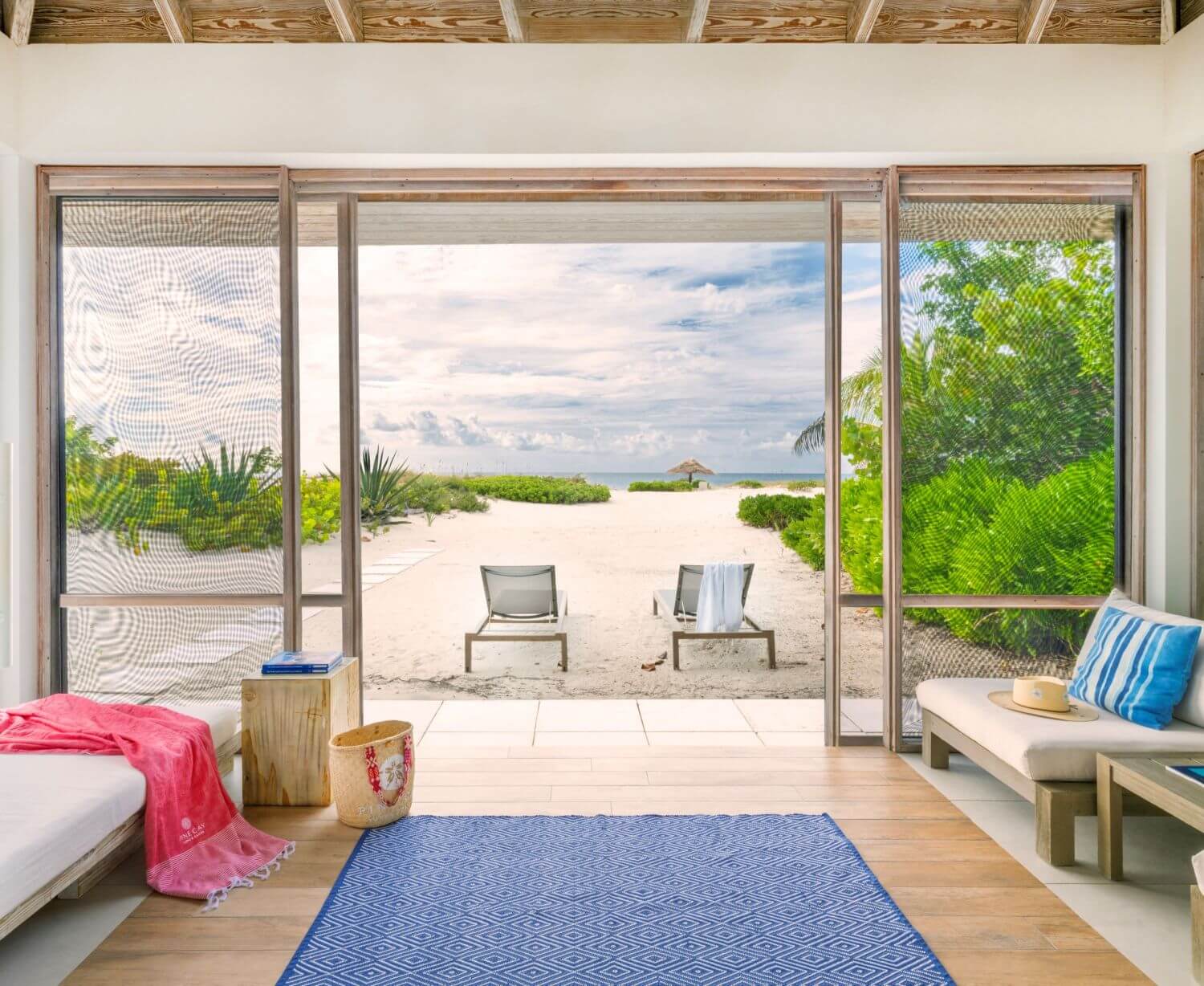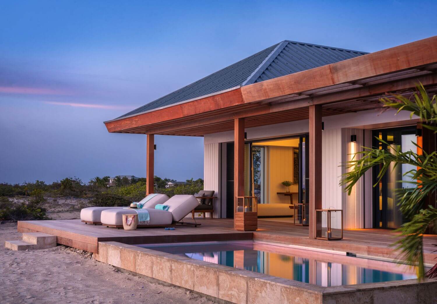Das Beach House with Pool verfügt über ein Schlafzimmer mit separatem Wohnzimmer und öffnet sich auf eine private Terrasse inklusive privatem Pool und mit direktem Zugang zum Strand. Die Houses liegen unmittelbar am Meer und bieten freie Ausblicke auf den Ozean.