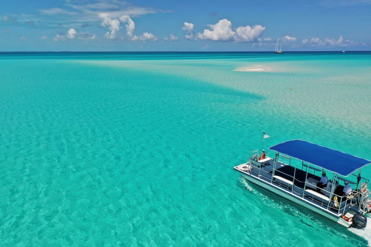 Vom Providenciales International Airport geht es zunächst in etwa 15 Minuten zur Marina, bevor Sie eine 20-minütige Bootsfahrt direkt nach Pine Cay erwartet.