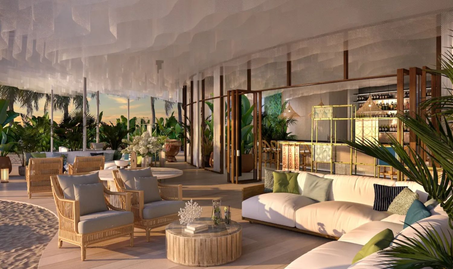Auf Shura Island, der Hauptinsel der Destination The Red Sea in Saudi-Arabien, verbindet das SLS The Red Sea das charakteristische Lifestyle-Konzept der Marke mit einer außergewöhnlichen Naturkulisse aus weißen Stränden, flachen Lagunen und geschützten Korallenriffen. Das SLS The Red Sea gehört zu den ersten Hotels, die in diesem ambitionierten neuen Luxusreiseziel eröffnet haben, und bringt eine lebendige, kosmopolitische Atmosphäre an eine Küste, die bisher kaum erschlossen war. Die Architektur folgt dem spektakulären Coral-Bloom-Masterplan von Foster + Partners, dessen organische Formen von Korallen inspiriert sind. Geschwungene Wege, Gärten und offene Plätze verbinden die einzelnen Gebäude miteinander und lassen die Anlage wie ein modernes Stranddorf wirken. Das SLS The Red Sea verfügt über 150 Zimmer, Suiten und Villen, darunter mehrere großzügige Strandvillen mit privaten Pools. Die Innenräume kombinieren natürliche Materialien mit den markentypischen Designakzenten der SLS-Hotels, während große Terrassen und Glasfronten den Blick auf das Meer und die Lagunenlandschaft freigeben. Kulinarik und Atmosphäre prägen das Erlebnis im SLS The Red Sea ebenso wie die Natur. Mehrere Restaurants und Bars, der lebendige Signature-Pool, der Ciel Spa sowie Ausflüge zu den farbenreichen Korallenriffen der Umgebung machen das SLS The Red Sea zu einem Ort, an dem Design, Social Scene und Strandgefühl unmittelbar zusammenkommen.